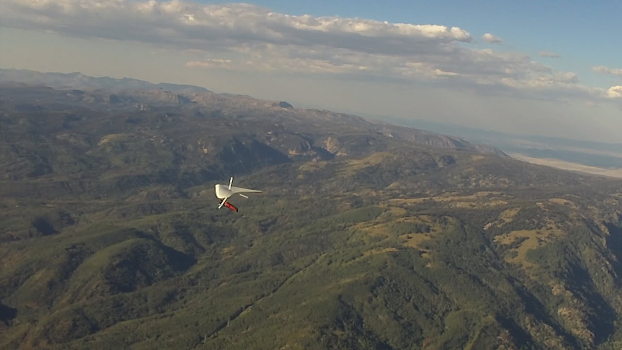 I think he was watching Brett below us too much, and so was I. The hawk surprised me as he had to flap and throw down his feet to clear my leading edge once. It was awesome! I tried chasing him around a bit when I was ready to burn off altitude and the picture is the best I got before he got the higher ground. If it was a dog fight, I’da lasted 10 seconds. Here’s a picture of Brett (who thermals like nobodies business).