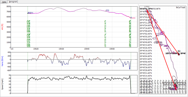 It was great starting an XC together. I was watching the best glide indicator a lot on my 6030 trying to keep on speed and using 3/4 VG a lot. It will take practice and bigger thermals to be proficient at that for a while. It’s pretty different to digest the subtle air messages when the glider responds so differently with the tight sail. Also, I’ve noticed for 3 flights now that I’m flying 27mph at my “trim” vs the old 24mph when I had the stock sprog setting. I tried to slow down in some thermals but was only a little bit successful. I kinda like the extra speed to push out (tighten up the turn) with when I get in the crappy side of the thermal anyway.
