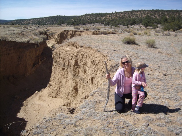 Trying to beat the sun-set, we blazed around the monument area looking for a non-RV, way off the beaten path type of camping spot. We took a long 4WD trail through sand and cow pastures to this spot. Morgan the ever-territorial dog chased off all but the bull that approached our camp site…