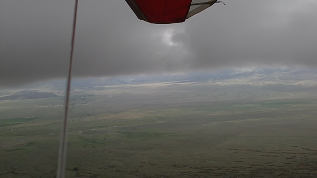 Sunday, a group of us got off and up and ran South almost immediately to get some distance from a wall of low cloud fallout. Most gust fronts this w/e would max out with 15mph wind so the HG’s weren’t as worried as typical, but this line of rain began to engulf everything we could see to the N and West so I eventually lost confidence in my understanding of what it might produce. As I ran South, I climbed 1500 ft in the rain and was thankful Leif bought us cheapo rain coats for the w/e. Rich and Brett caught up to me and we made good time in the ridge lift created by a smaller gust front. No video, but it was epic getting up to the clouds and cruising in the Sport 2. As things closed in, I opted to glide to Valley View Hotsprings (8 miles from launch) and wing-over my altitude down to the ground.