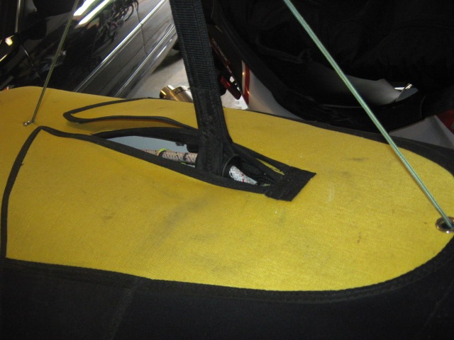 That blue neoprene was put there when we were trying to protect the “boys”.  But, when I started flying with it instead of just experimenting in the garage, the “boys” weren’t getting pinched.  So it was a non-issue.