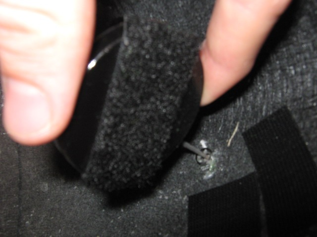 I don’t want to open it back up again, but the main “coiler” part of this thing is held inside the empty void of the helmet with velcro and has stayed there great. Doesn’t rattle. I put the extra white plastic thing on there with hot glue and tried to get hot glue in the hole I drilled so as to lubricate the paraglider cord against the fiberglass helmet.