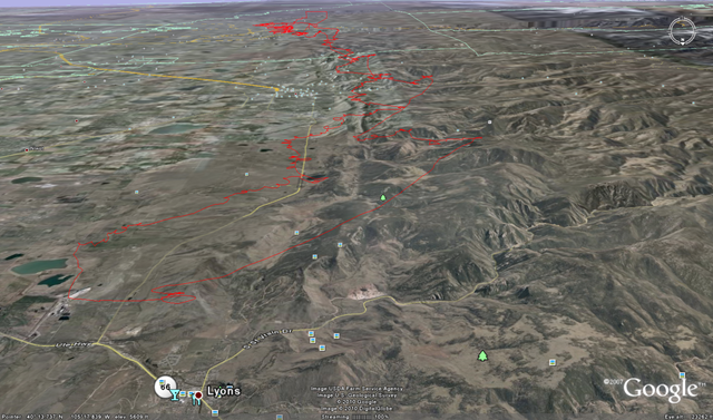 On the return trip, I was in marginal lift over Coal Creek peak and a sailplane came smokin by maybe 100ft below me.  He banked hard and hooked a good 600fpm so I jumped in right at his altitude.  He didn’t flinch a bit and I could see him looking up at me through the window.  Pretty cool and I was wondering if it was ex-HG pilot Bob Ferris.  This thermal, and the huge cloud over Ralston Butte got me back to Lookout.  While I was able to out climb the sailplane, his glide performance left me in the dust.  Huge highlight of the otherwise lonely flight.